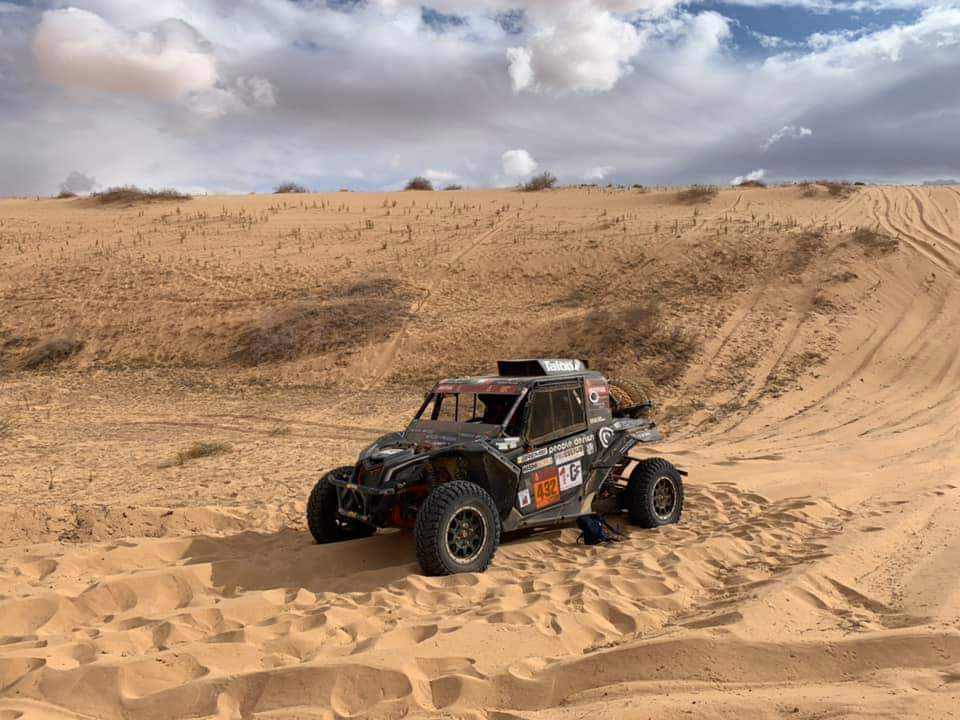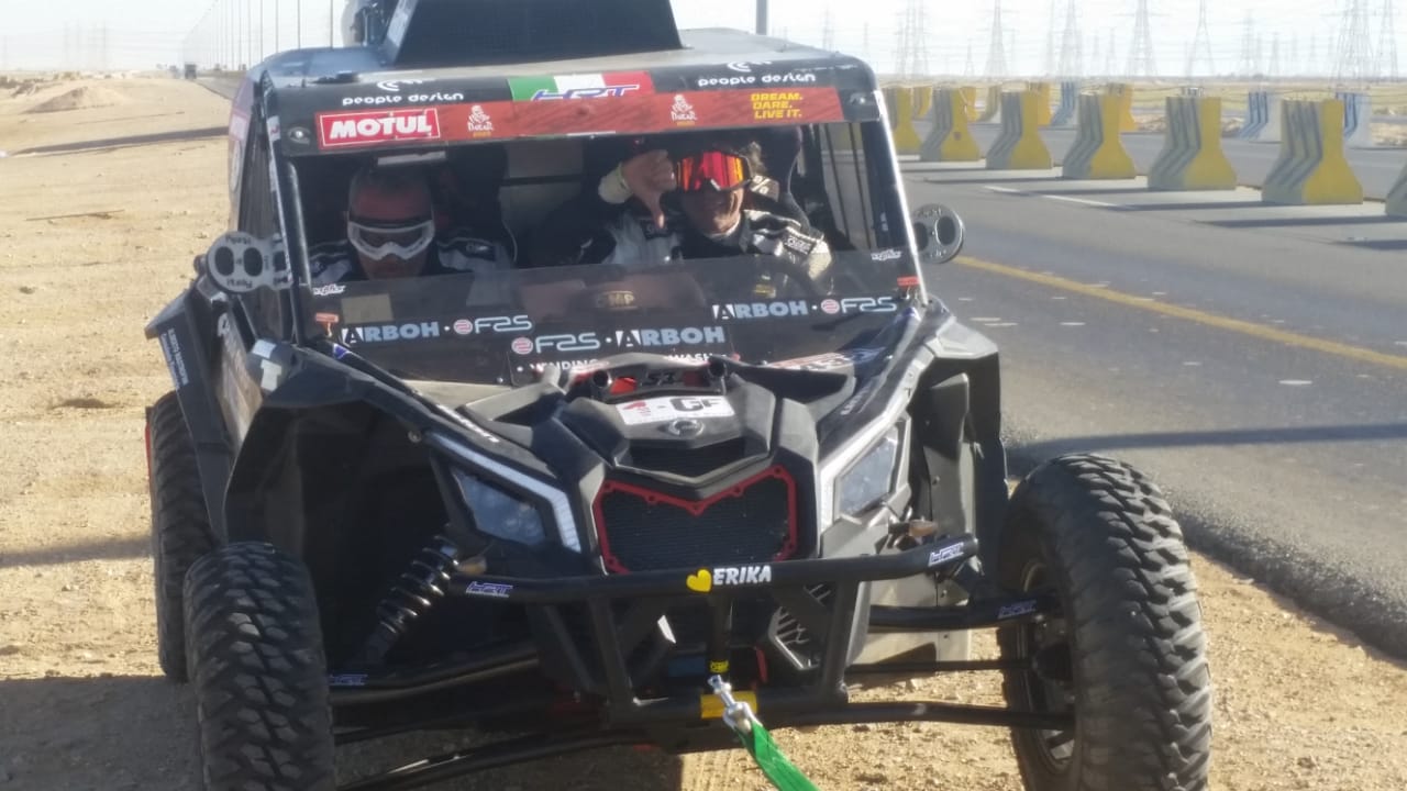 "Una vera disdetta, dopo 400 Km di traino abbiamo raggiunto il bivacco e abbiamo smontato tutto e ripulito tutto aggiungendo un filtro supplementare rientrando in gara nella categoria Experience, una novità della Dakar di quest'anno, che permette di avere un "jolly di rientro" e disputare le restanti speciali anche se fuori dalla classifica generale. Anche la ripartenza non è stata baciata dalla buona sorte, dopo una prima parte di speciale senza problemi abbiamo accusato la grande polvere che si trova a partire nelle retrovie, soprattutto quella dei grandi e veloci camion, ma stringendo i denti siamo arrivati al traguardo nonostante un vistoso calo di potenza del nostro Can Am. Il giorno successivo siamo ripartiti dopo 3 sole ore di sonno, senza neanche toglierci la tuta ed abbiamo iniziato anche a divertirci, almeno fino a quando un problema elettrico non ci ha fatto perdere 2 ore. Risolto il problema grazie all'intervento del camion assistenza siamo ripartiti ed abbiamo affrontato la seconda parte di speciale con molte dune e con l'oscurità. Un problema alla cinghia di trasmissione ci ha di nuovo stoppato, abbiamo atteso invano l'arrivo del camion assistenza che pensavamo essere dopo di noi... Con i mezzi a bordo il problema non era purtroppo risolvibile e la nostra Dakar è definitivamente terminata tra le dune in un bel chiaro di luna e nella solitudine estrema.... fino a quando siamo stati raggiunti da un mezzo dell'organizzazione che ci ha accompagnato al bivacco dove siamo giunti al mattino lasciando la vettura da gara nel deserto per poi ripartire quasi subito a recuperarla grazie al supporto dei vigili del fuoco locali."
