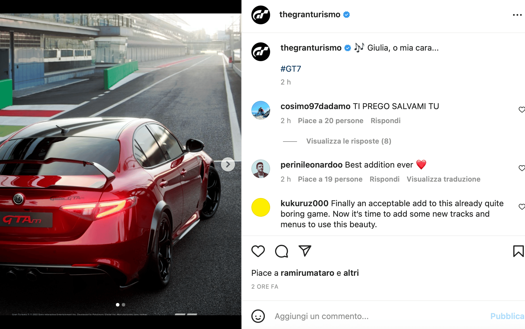 Giulia GTAm del post su instagram che vi riportiamo qui sotto.
