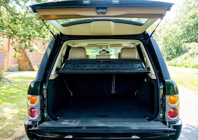 una protezione per cani che separa l'abitacolo e il bagagliaio con una gabbia che ospitava gli amatissimi Corgi Reali della Regina. Il SUV ha anche una griglia anteriore modificata con luci supplementari.
