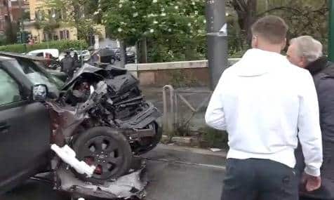 L'auto del calciatore, su cui viaggiavano anche le sue due figlie piccole, ha impattato con il tram numero 19 mentre attraversava ponte Matteotti, tra Prati e Flaminio. Il tram, che stando ai primi accertamenti aveva i freni rotti ed è passato con il rosso, è uscito fuori dalle rotaie e la macchina ne è uscita distrutta come si può chiaramente intuire da queste foto scattate sul posto.