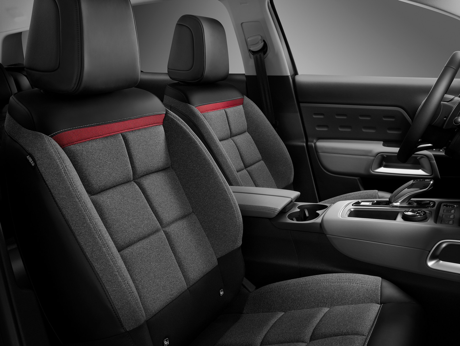 Citroen C5 Aircross “C-Series” presenta una plancia decorata in TEP Grey, abbinata alla cinghietta con impunture bianche e ai sedili Advanced Comfort in Tessuto/TEP Wild Grey EVO con Armonia Nixon Grey, caratterizzati anch’essi da impunture bianche e da una fascia orizzontale a contrasto. A completare il tutto, tappetini specifici anteriori e posteriori neri con impunture rosse. Equipaggiamenti di serie