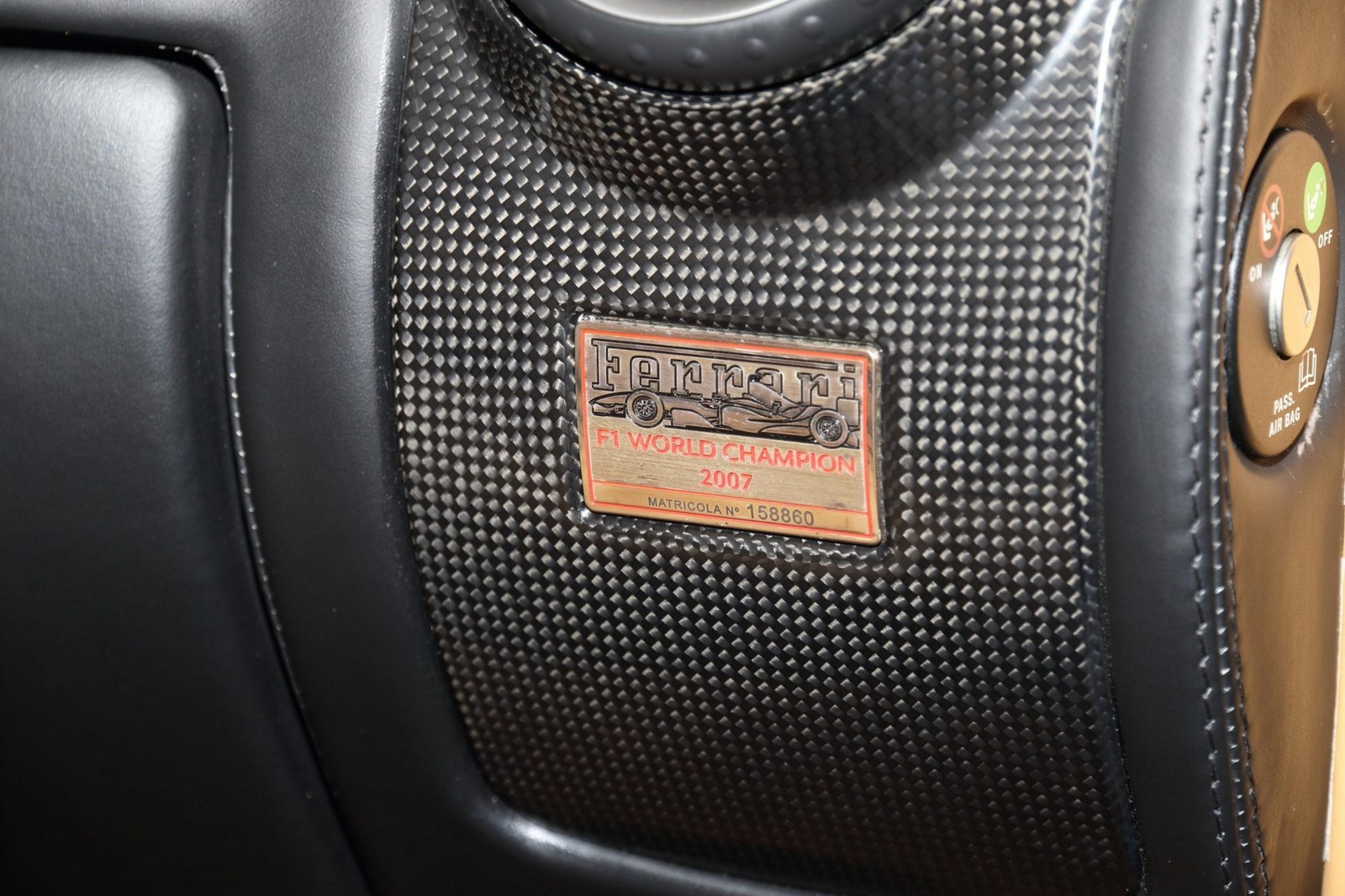 Questa bellissima supercar è stata frutto di una collaborazione con Pininfarina e, in questa versione Spider, si caratterizza per una capote in tela, carrozzeria in tinta Rosso Corsa, pneumatici a doppie razze da 19” Bridgestone e loghi “Scuderia Ferrari” sui montanti anteriori. A completare il tutto troviamo freni in fibra di carbonio e valvole TPMS per la rilevazione della pressione degli pneumatici installati a gennaio 2019.