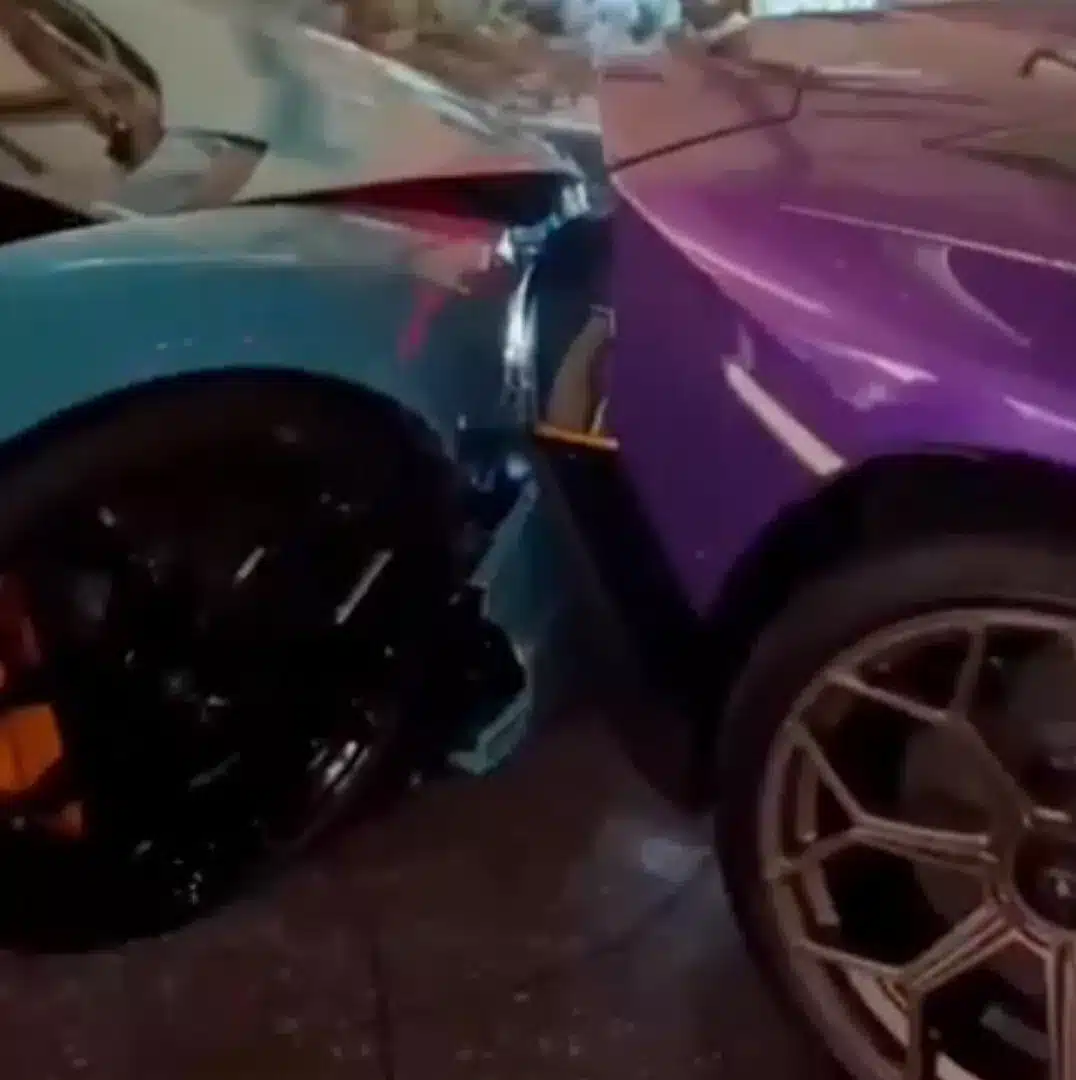 una Lamborghini Aventador Ultimae Roadster di proprietà di un cliente quando si è schiantato durante una manovra contro una Lamborghini Aventador Ultimae Coupé, di un altro cliente della struttura. Tutte e due le supercar erano a noleggio e rappresentano due serie limitate,