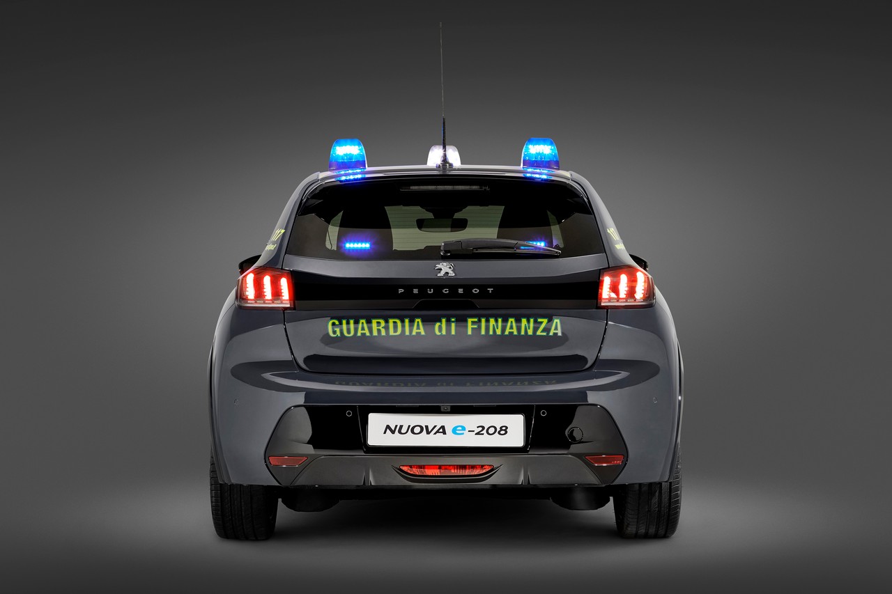 L'abitacolo della e-208 in divisa è allestito con dispositivi progettati specificatamente per rendere l’auto funzionale al servizio, come la pulsantiera ergonomica per gestire i sistemi luminosi ed acustici. Esternamente, in parallelo alla livrea istituzionale ad alta rifrangenza, sono previsti lampeggianti e micro LED perfettamente integrati nella carrozzeria che garantiscono massima visibilità in tutte le fasi operative, anche a veicolo fermo.
