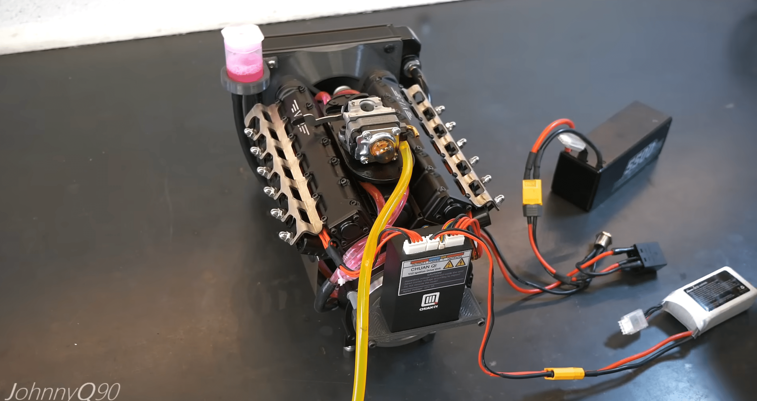 Ma la domanda che uno si pone è: come ha fatto lo youtuber a farlo funzionare? Il blocco motore è stato dotato di un modulo di accensione elettronica e di un volano di bilanciamento nella parte posteriore.