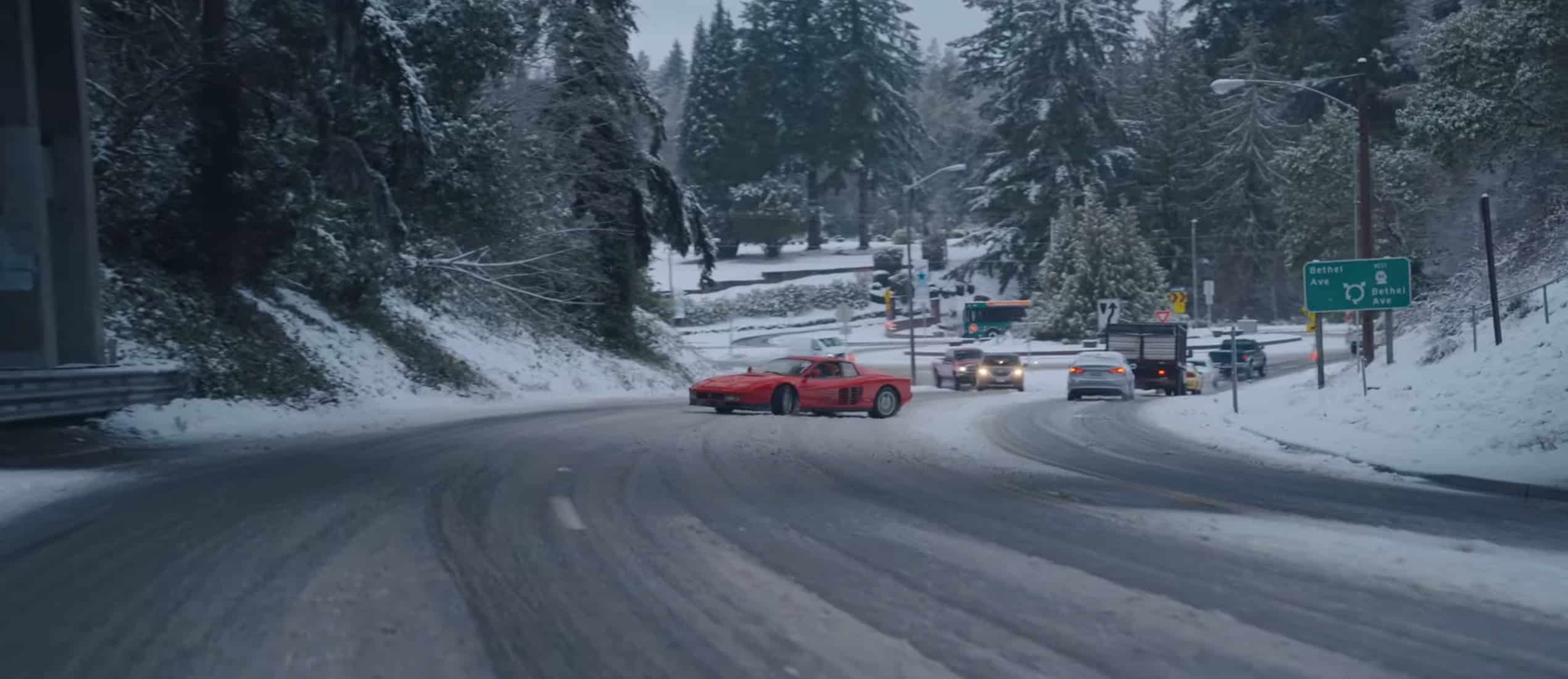 Ferrari Testarossa non ha pneumatici invernali, il che promette una guida ancora più difficile, ma a questo proprietario non importa.