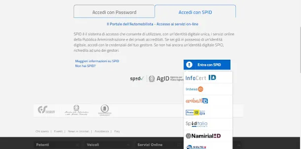 Vediamo quindi come accedere al Portale dell'Automobilista utilizzando la SPID: