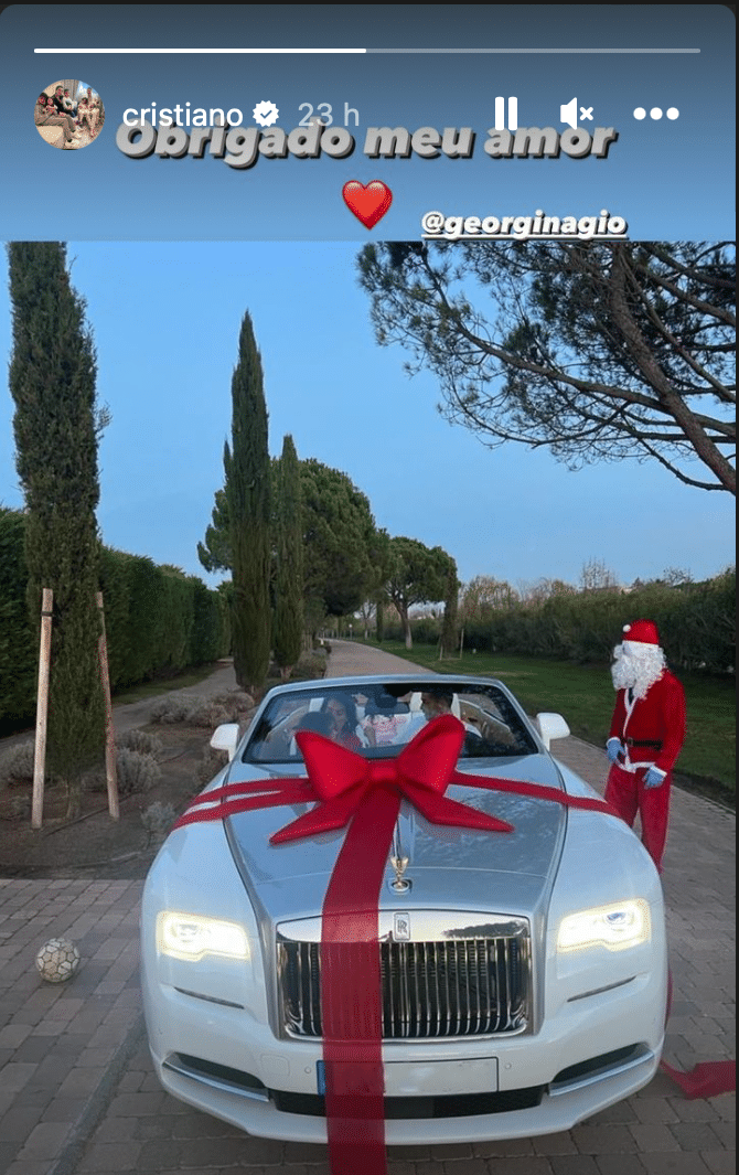 Con questo video l'influencer e showgirl Georgina Rodríguez ha regalato al suo compagno, il fuoriclasse ex Juventus e ormai ex Manchester United Cristiano Ronaldo una delle Rolls-Royce più belle e soprattutto care, stiamo parlando della Rolls-Royce Dawn decappottabile da poco meno di 400.000 euro. Il tutto è stato regolarmente documentato con un video postato su Instagram dalla compagna di Ronaldo. CR7 ha scelto di postare un’immagine temporanea con la scritta “Grazie amore mio”.