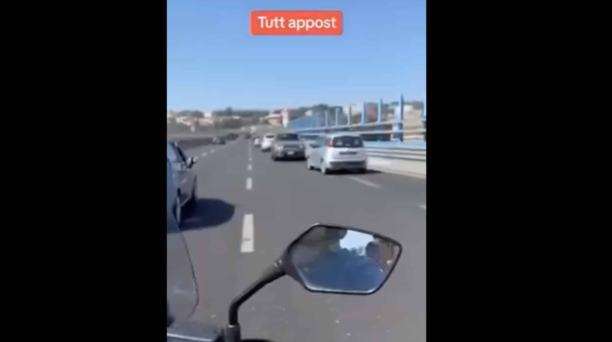 La folle scena, è stata ripresa da un incredulo motociclista che si è trovato ad assistere alla scena a fianco a sé, mentre lui stava effettuando il sorpasso della Jeep Renegade che procedeva nella corsia a destra come se stesse regolarmente viaggiando nello stesso senso della moto. Questa folle scena è stata subito condivisa sui social.