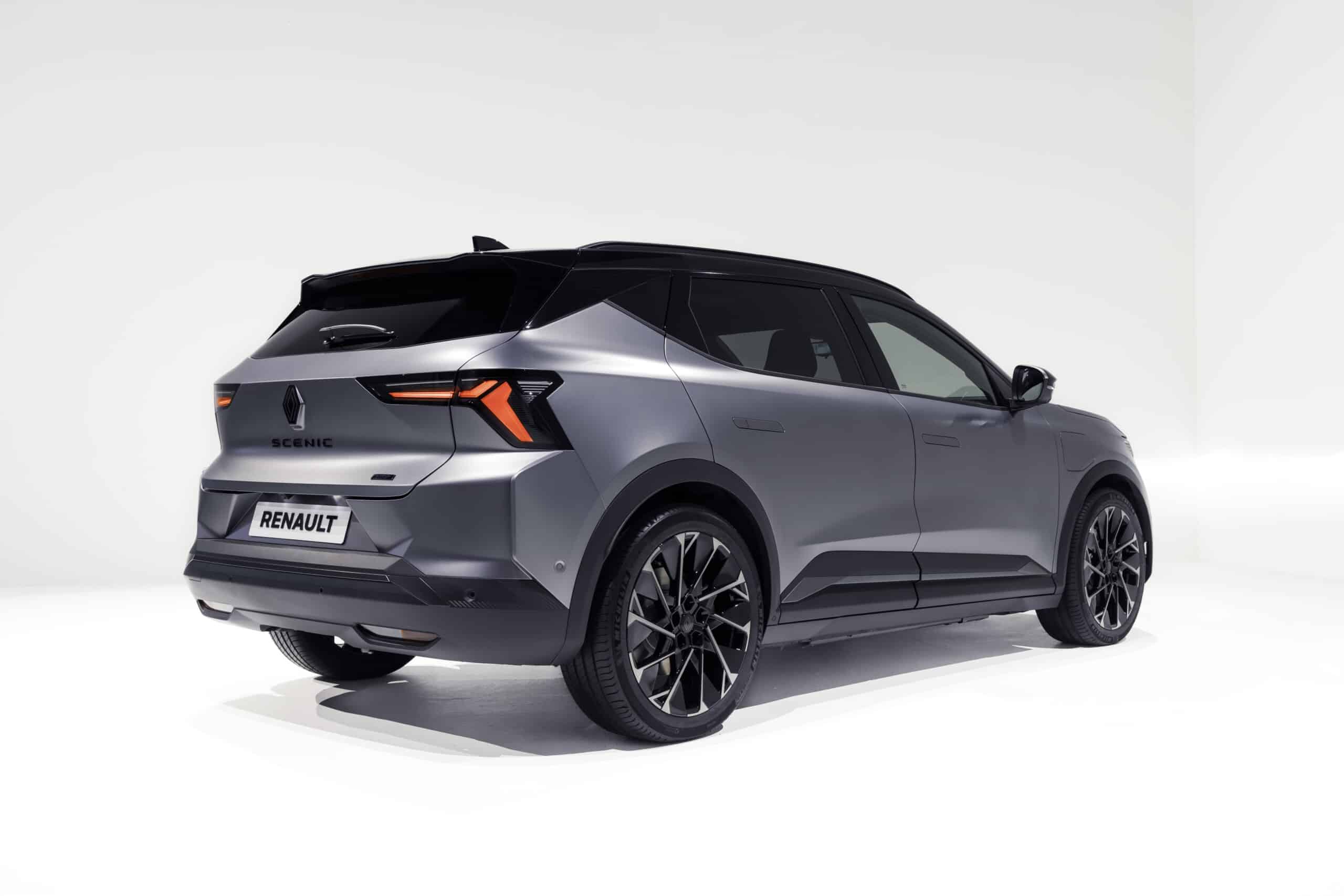 Il posteriore della Renault Scenic E-Tech vede nuovi fari posizionati alle estremità, come due frecce, su entrambi i lati della carrozzeria. Quando questi vengono accesi, sono animati dalla tecnologia micro-ottica mentre, una volta spenti, creano un effetto dinamico e flottante. La nuova Renault Scenic E-Tech sarà disponibile in sei colorazioni: Rosso Passion, Blu Notturno, Nero Etoilé, Grigio Scisto, Grigio Scisto Satinato (solo Esprit Alpine) e Bianco Nacré.