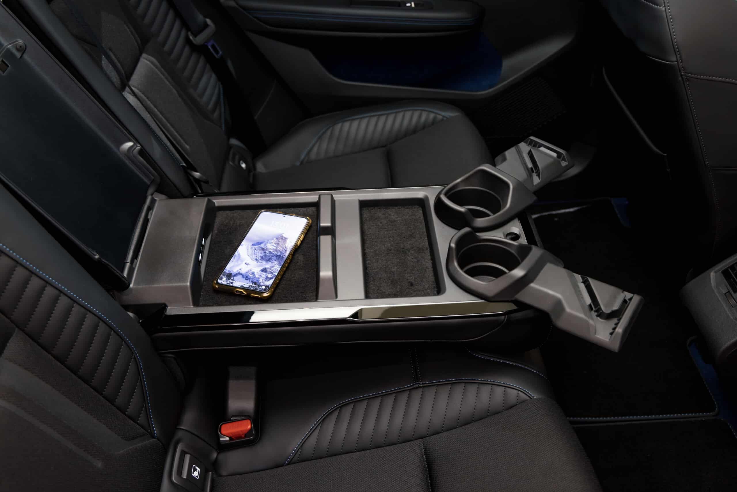 Il pavimento piatto aiuta diventa un plus per poter accomodare i piedi senza difficoltà, anche per chi dovesse sedersi sul posto centrale. Risulta molto innovativo il bracciolo, che ingloba due prese Usb-C, vani portaoggetti rivestiti di fondo morbido e supporti per alloggiare un tablet o un paio di telefoni.