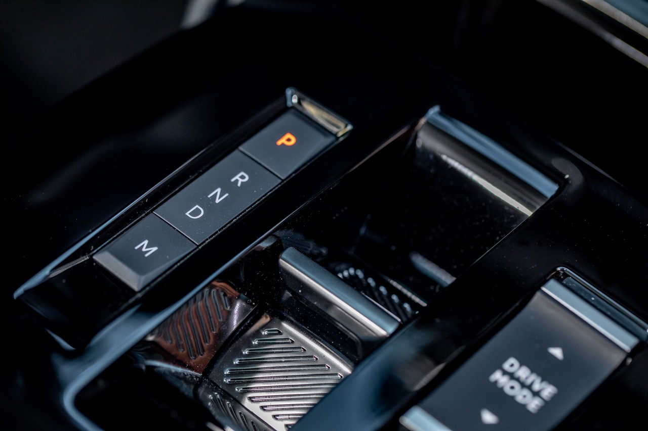 saliamo sulla e-C4 elettrica per scoprire come va. Cambia il tunnel centrale, dove la levetta dell’automatico è di nuova concezione e permette di selezionare anche la