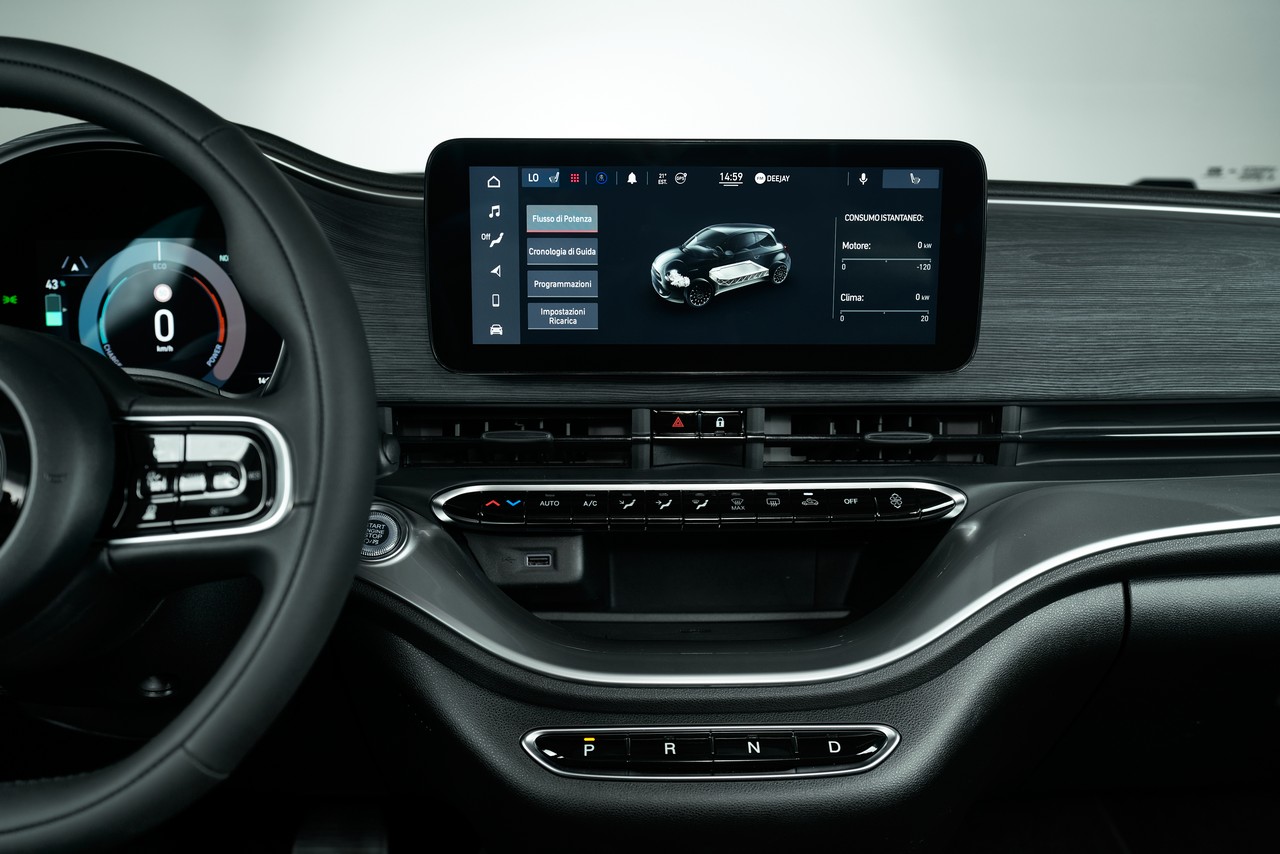 Fiat”, controllando i parametri di autonomia e di ricarica, impostando il climatizzatore e scegliendo la musica preferita.