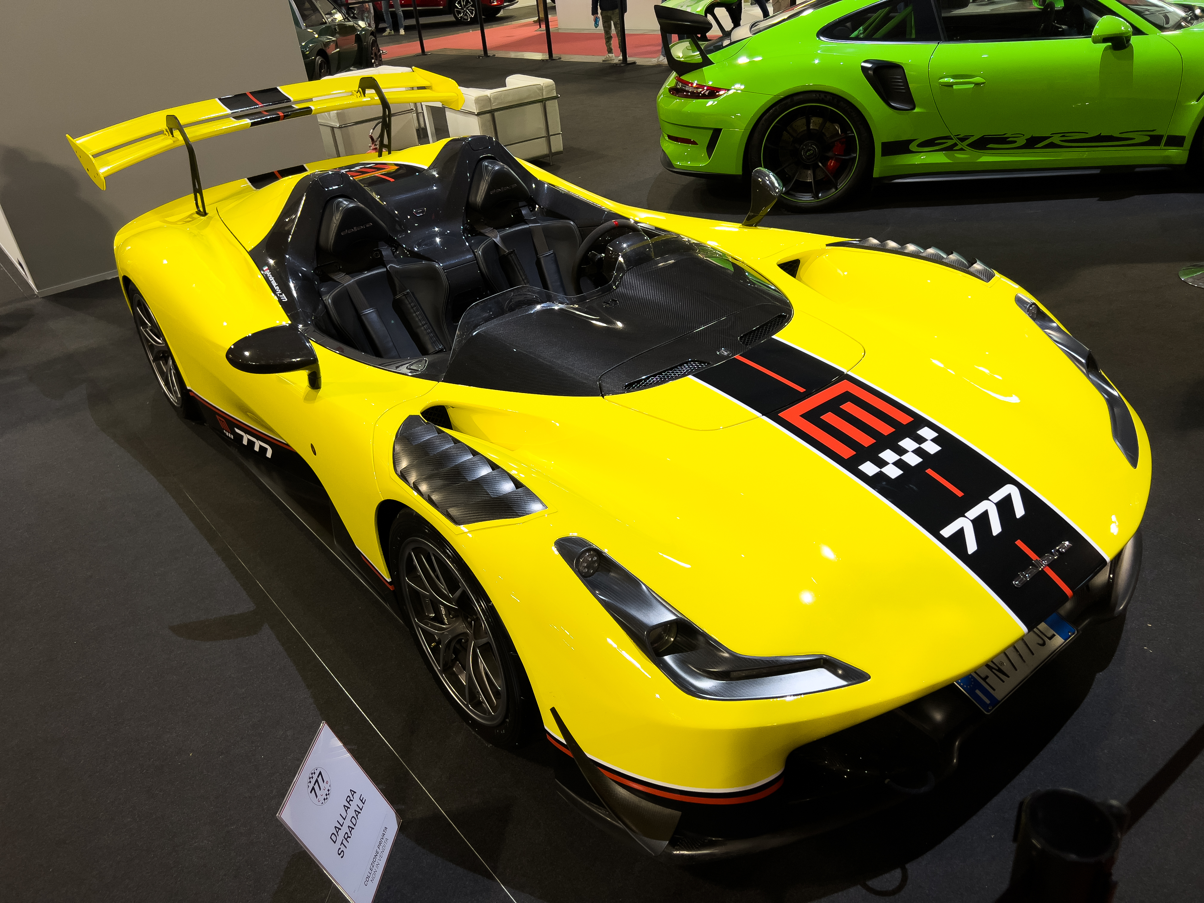 Lì vicino il Club 777 di Andrea Levy (patron del Milano Monza Motorshow) espone una Dallara Stradale e una 296 GTB (con livrea personalizzata e ritirata da poche settimane) insieme ad una 911 GT3 RS verde. Ancora nel padiglione 7 lo stand Kimera Automobili mette in mostra ben tre 037 di cui una con livrea Martini Racing, Lotus porta una Elise, la Emira e il Suv Eletre, Aston Martin una Vantage V12 (una delle 333), una DBX 707 due DBS e Maserati sfoggia la MC20 (proponendo nell’area esterna anche il test drive della Grecale GT). Non esattamente una banalità. Due auto di quel padiglione, però, non le ha praticamente nessun altro al mondo.