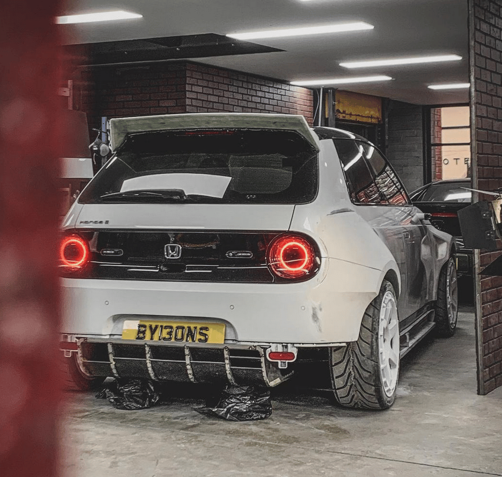 Per ora questa ipotesi non ha ancora trovato nessuna conferma, tuttavia l'azienda neozelandese Innovate Composites non è rimasta con le mani in mano, ma ha pubblicato sul suo profilo Instagram le immagini di una Honda-e decisamente cattiva. La Keicar giapponese, che viene proposta in due diverse versioni, è stata sottoposta a una serie di vistose modifiche estetiche. Il modello adotta anche la livrea Red-Bull, sfoggia dei passaruota maggiorati, un vigoroso splitter anteriore con elementi in carbonio, cerchi maggiorati da competizione, un estrattore sul retro e un generoso spoiler posteriore.