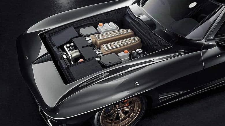 Pur conservando le proporzioni originali, oltre ai particolari tanto belli quanto inconfondibili della Corvette C2 come il lunotto posteriore sdoppiato, il restomod di American Legends Builds ha uno sguardo “cattivo” con sottilissimi fari a LED nella parte frontale integrati in un vistoso spoiler. Mentre nella parte posteriore si fa subito notare per l’enorme diffusore e i 2 terminali di scarico. Completano tutta l’opera i cerchi in lega color bronzo, contornati da pneumatici semi-slick.