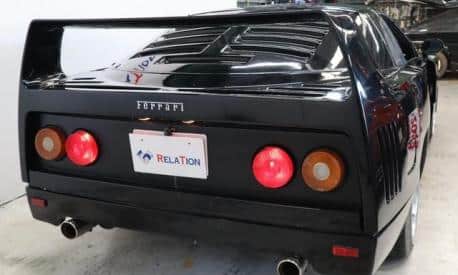 Non manca neppure l'inconfondibile alettone della Ferrari, così come la copertura del cofano posteriore con le feritoie per aerare il motore, anche se, va detto, su questa vettura il propulsore è posizionato anteriormente. Anche l'abitacolo è stato modificato per assomigliare il più possibile a quello della sportiva di Maranello, con tanto di volante sportivo OMP decorato con il logo del Cavallino Rampante, non proprio un lavoro certosino, ma tutto testimonia la voglia di essere una Ferrari F40, ma è rimasta una Mazda RX-7.
